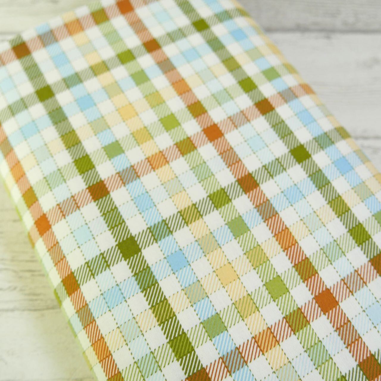 ・緑、黄、オレンジの8ミリ格子、独特のかわいらしさのあるチェック模様です