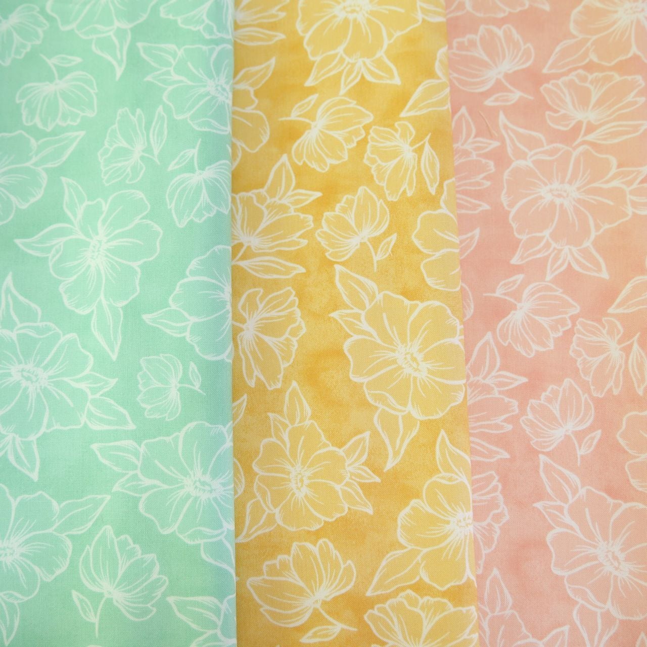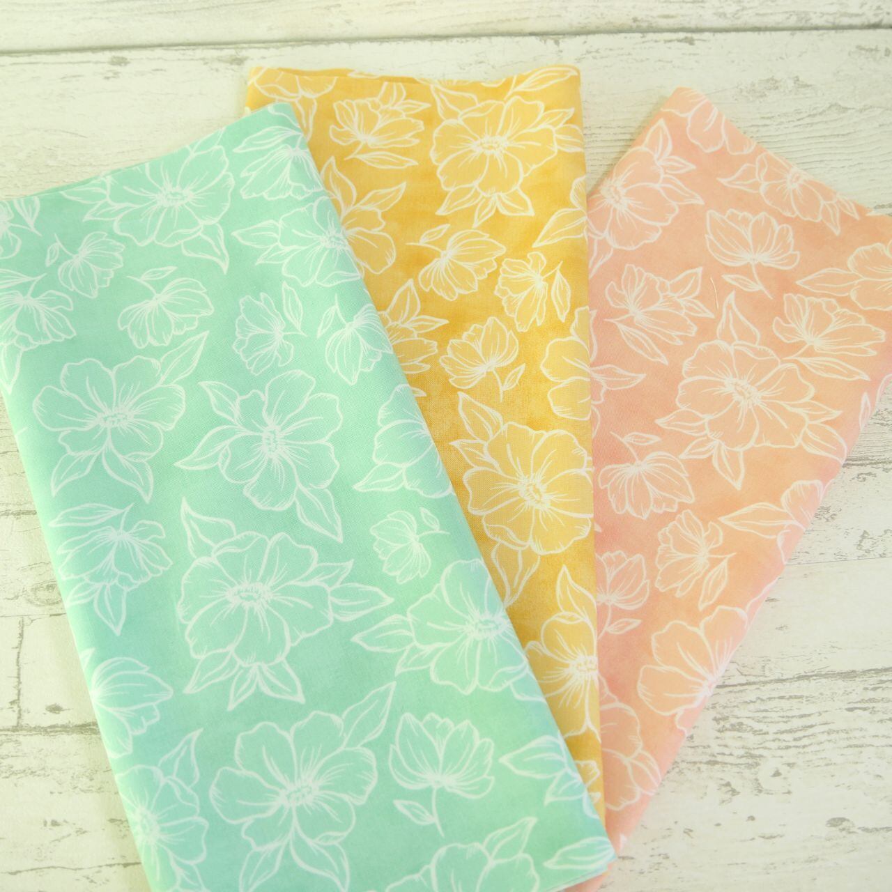 ・moda2024年7月新作【Kindred】カインドレッドより、パステルカラー地に白地のお花が描かれています