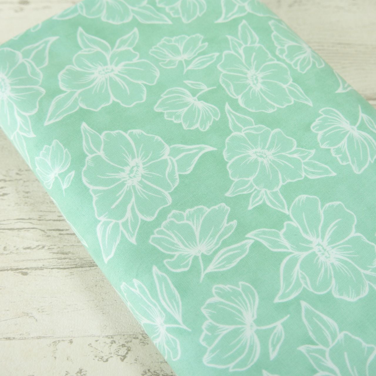 ・moda2024年7月新作【Kindred】カインドレッドより、グリーン地に白地のお花が描かれています