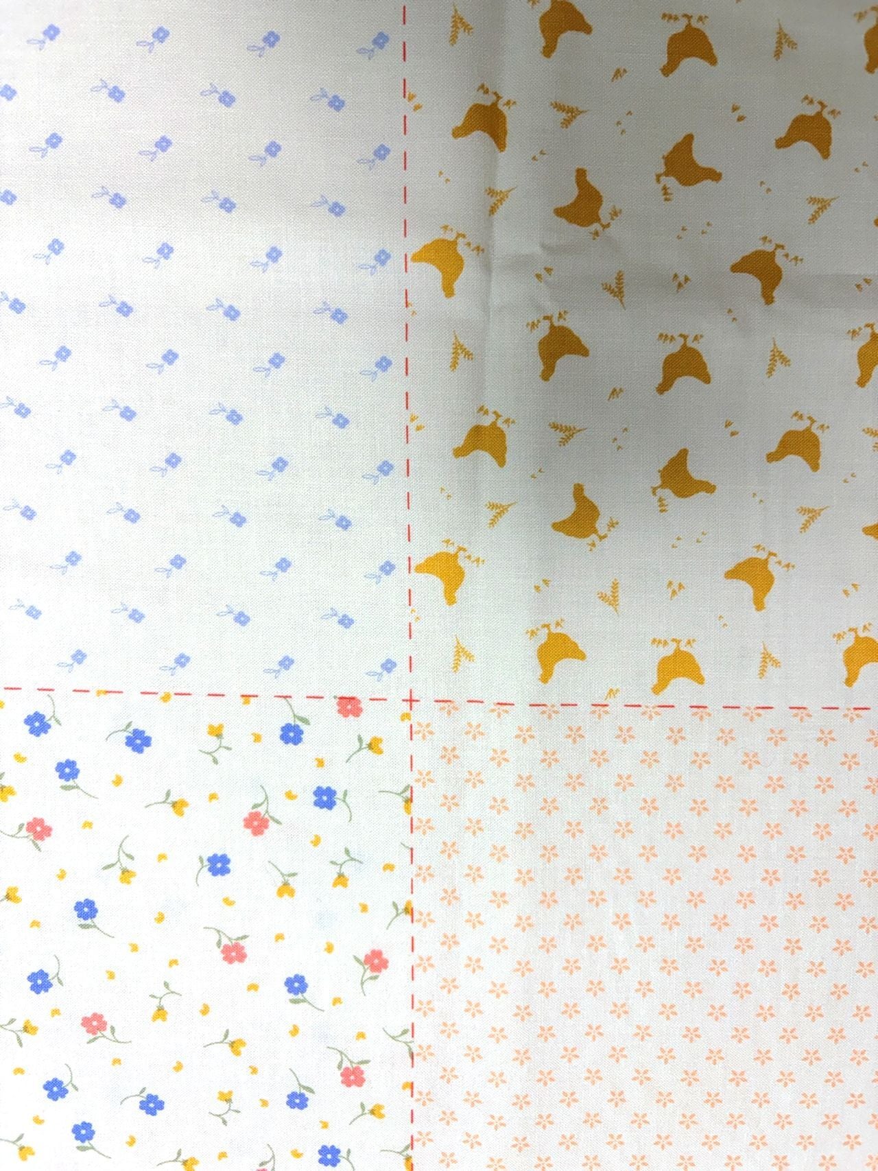 ・90㎝×110㎝のパネル生地の中に、12個の小さな模様が描かれています