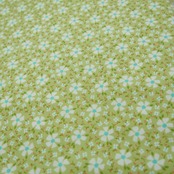 ・美しい心惹かれる黄緑色に、水色の花芯のお花が魅力的な生地です