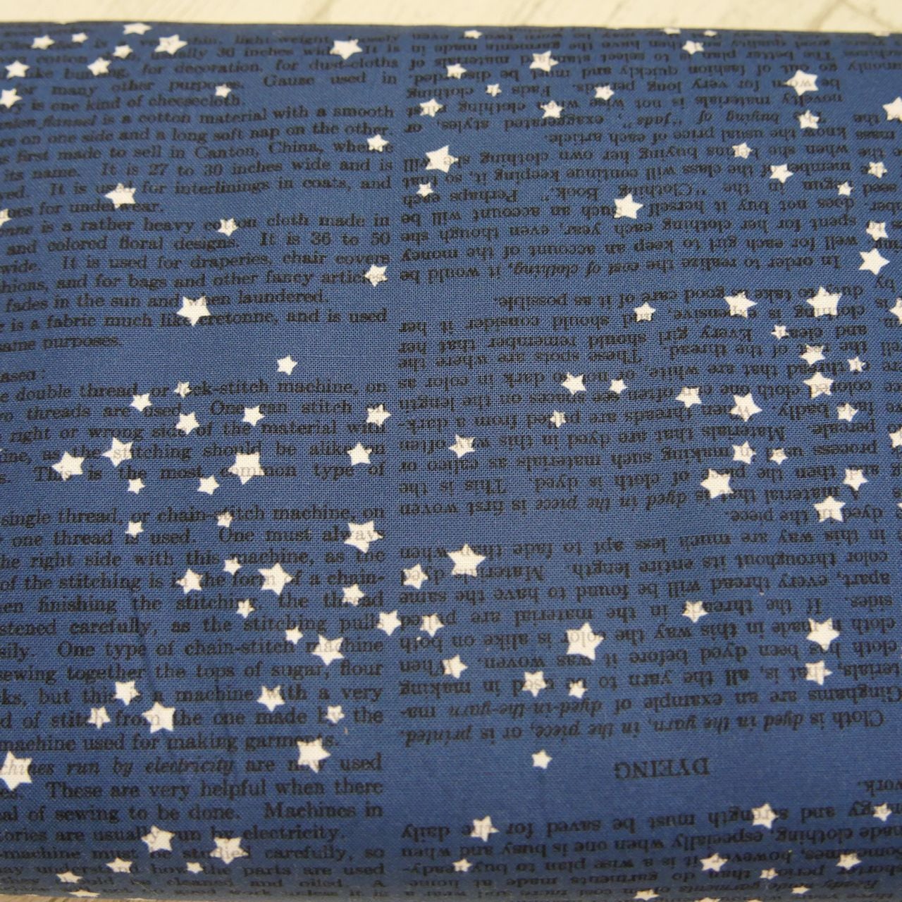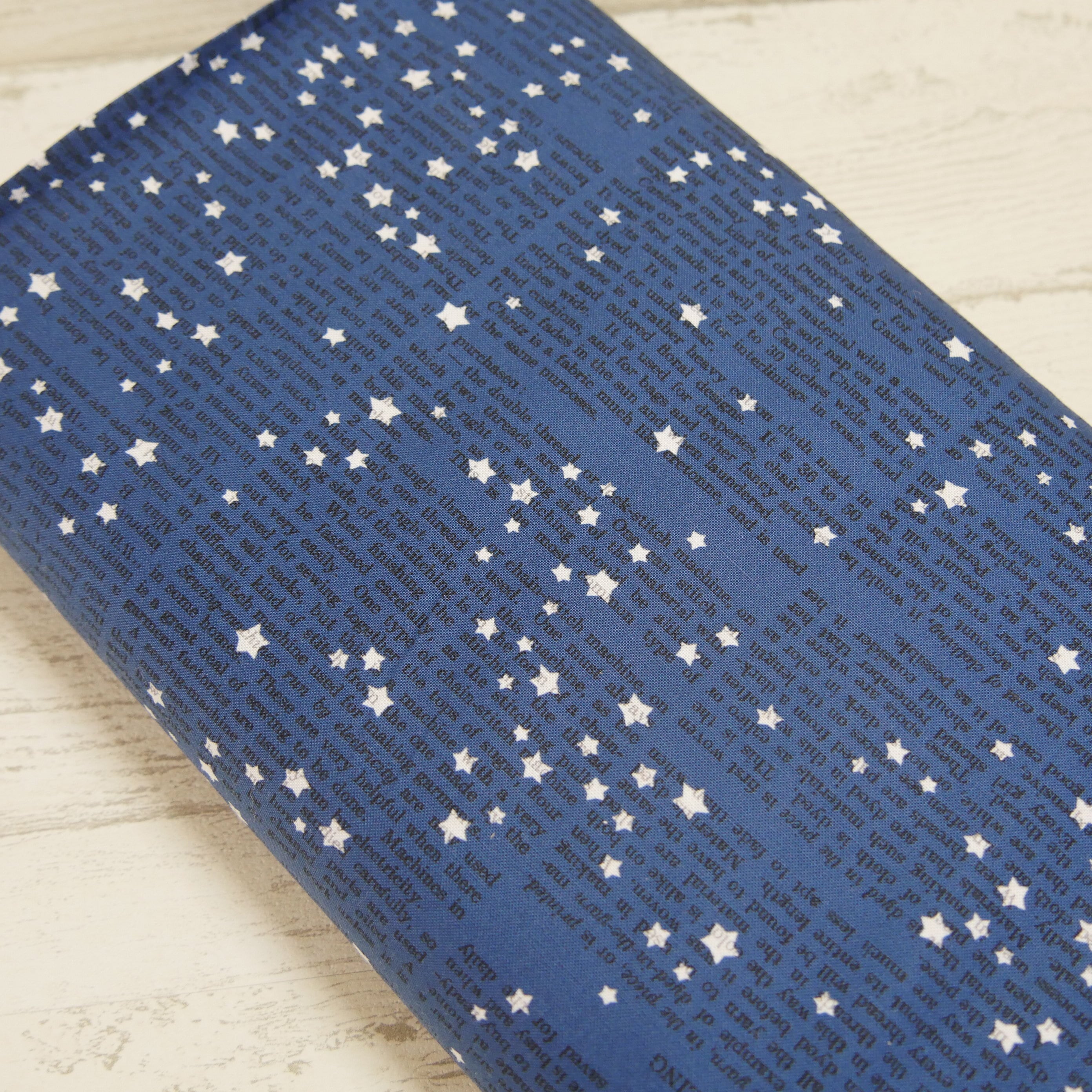 ・濃紺×英字に白いお星さま模様が散りばめられた個性的な生地です
