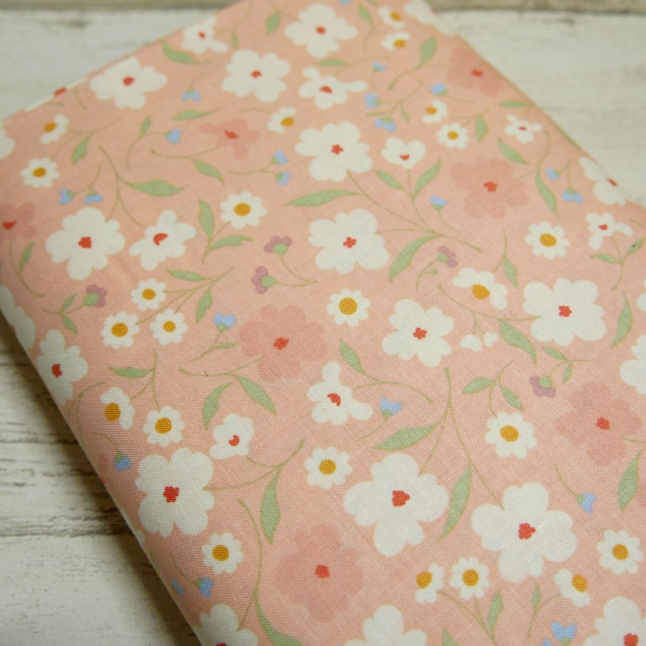 ・淡く優しいベビーピンクの地色の中に咲く白いお花が可憐です