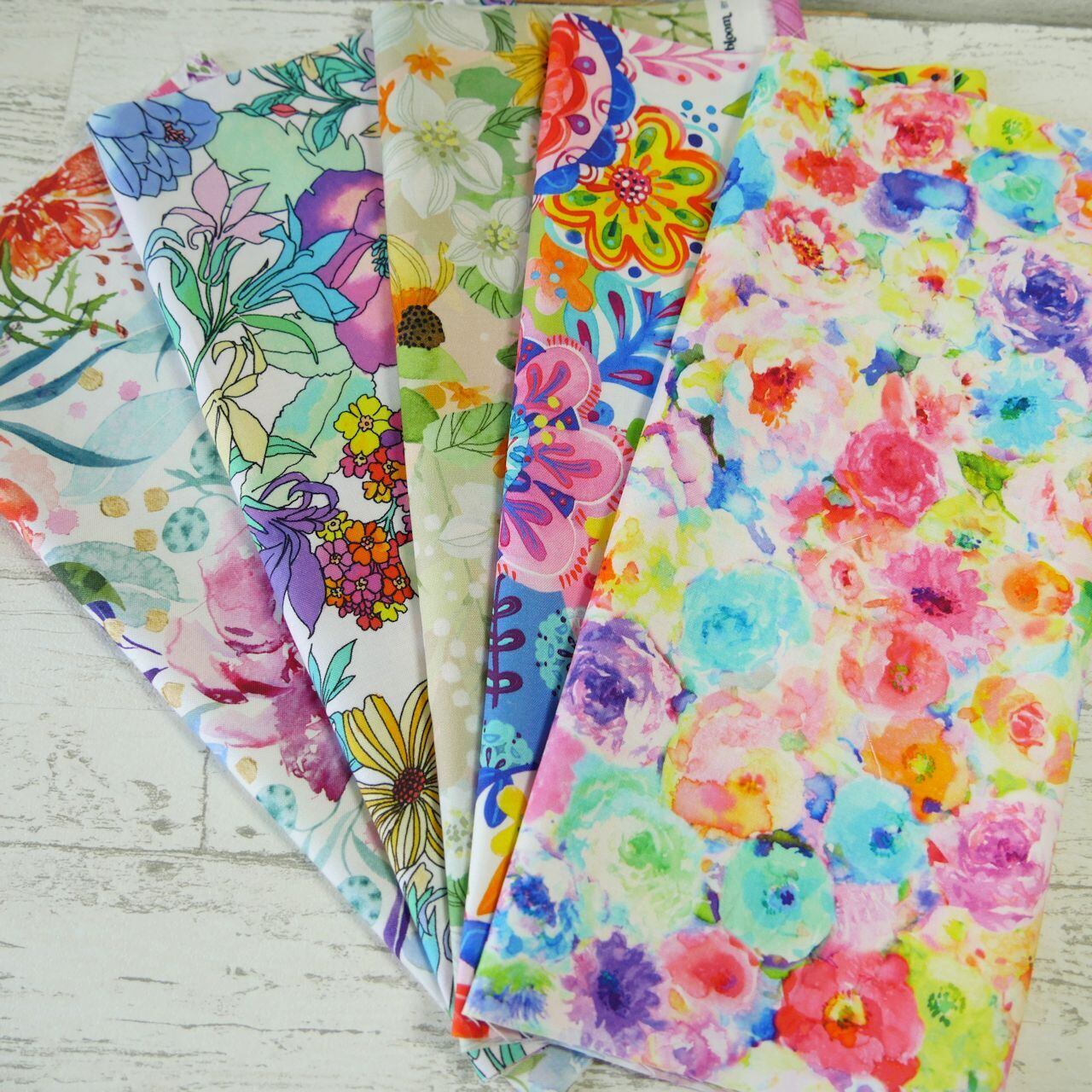 USAコットン、modafabricsよりカラフルビューティフルな大きなお花柄を集めてセットにしてみました