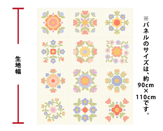 ご覧いただきましてありがとうございます! 【カット単位】 110㎝×90㎝ ¥1880 (¥2090/m ) 【生地説明) ・100%コットン シーティング ・こちらはmoda2026年3月新作【パステルプレイリー】です ・moda人気デザイナーHeather Briggs of My Sew Quity Lifeさんの作品です ・90㎝×110㎝のパネル生地の中に、12個のお花のリース模様が描かれています ・ひとつの模様の大きさ よこ27㎝×たて32㎝ このサイズがよこ3×たて4合計12枚です ・どのリースも淡く優しいお色で心癒されます お気に召していただけますように。 【ご購入に際しましての注意事項】 ●納品書はお入れしておりません。ご了承下さいませ。 ●クリックポストお問い合わせ番号は基本記載しておりません。 ご要望を頂きましたら、記載させて頂きます。 ●発送について ほとんどの商品は郵便局のクリックポストでお送りさせて頂きます。 発送時に追跡番号は記載しておりませんので、必要な方はメッセージにてお知らせください。 ●商品はすべて(輸入生地・国産生地)、正規ルートから仕入れております。 コピー品は一切扱っておりませんので、安心してお買い求め下さい。 ●出来る限り実物のお色に近づけるよう編集しておりますが、 布により実物のお色と違う場合がございます。 ●商品の充実に努めるため、詳しい商品説明を省かせて頂いております。 商品について、何かご質問がございましたら、メッセージよりお気軽にお声かけ下さいませ。 ●アンティークもの、新作ものともに適正価格を心がけておりますが、昨今の値上がりにより商品によりお値段のバラつきがあることをご了承下さいませ。 ●アンティークもののブランド等、実際のブランドと相違があることがございます。 ●当店は店舗ではなく、自宅の一部で作業しております。 猫を飼育しており、階を分け、アトリエには入らないようにし、作業前に体を清潔にしておりますが、 アレルギーその他、気になる方はご購入をお控え頂ければと思います。 以上、ご留意頂けましたら幸いです<m(__)m>